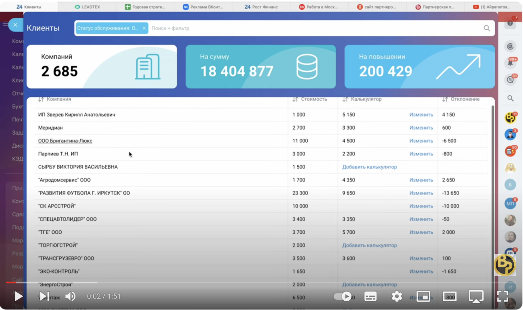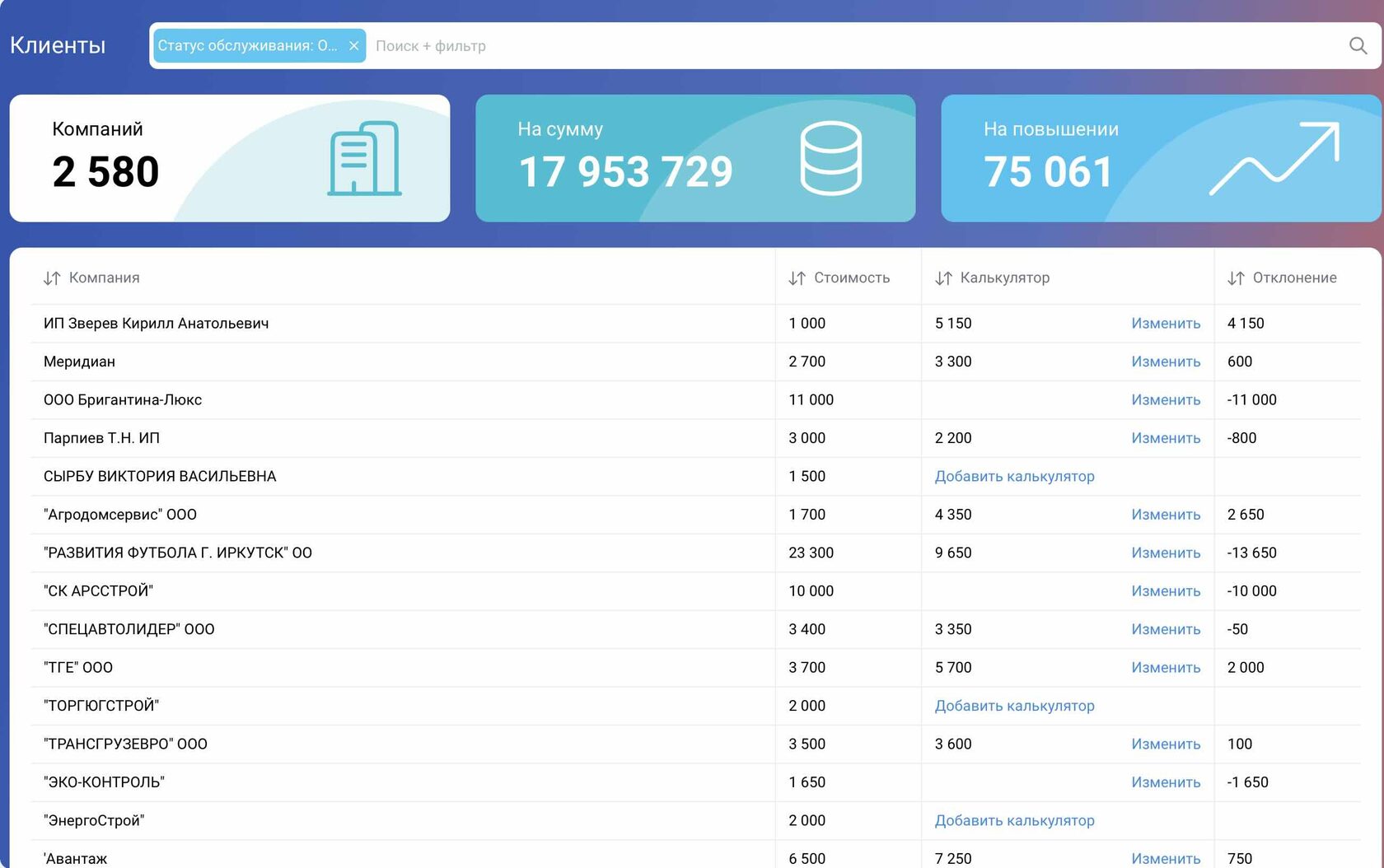 Система контроля нагрузки бухгалтера и перерасчета стоимости действующих клиентов - Клиенты