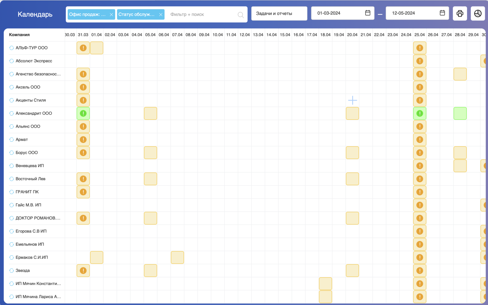 Система автоматической постановки задач и простого наглядного контроля бухгалтерии - Календарь бухгалтера
